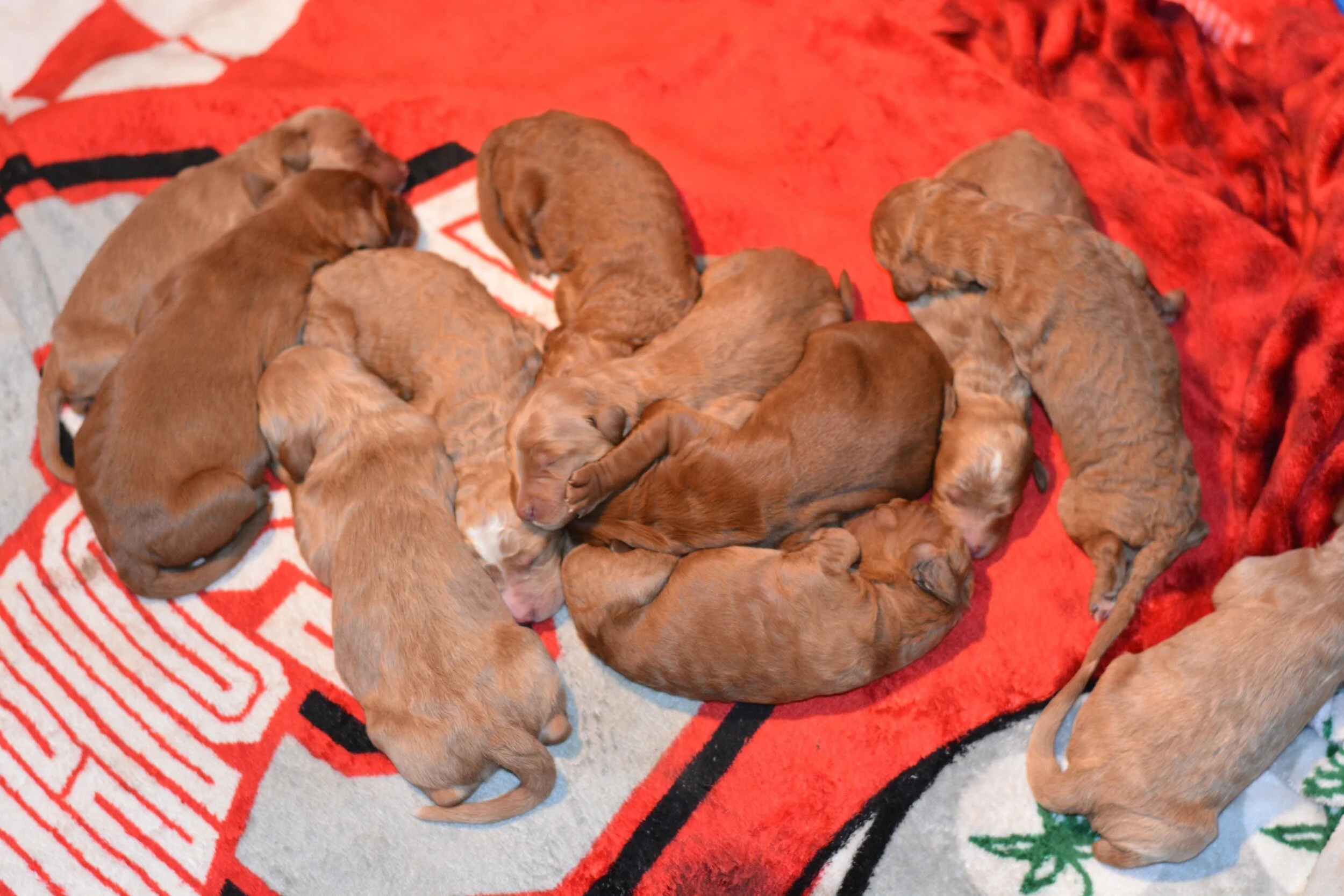 Molly and Frazier had this big litter of F1b standards (55-65) Thanksgiving Day. They will be ready to go home on 01/16/16.