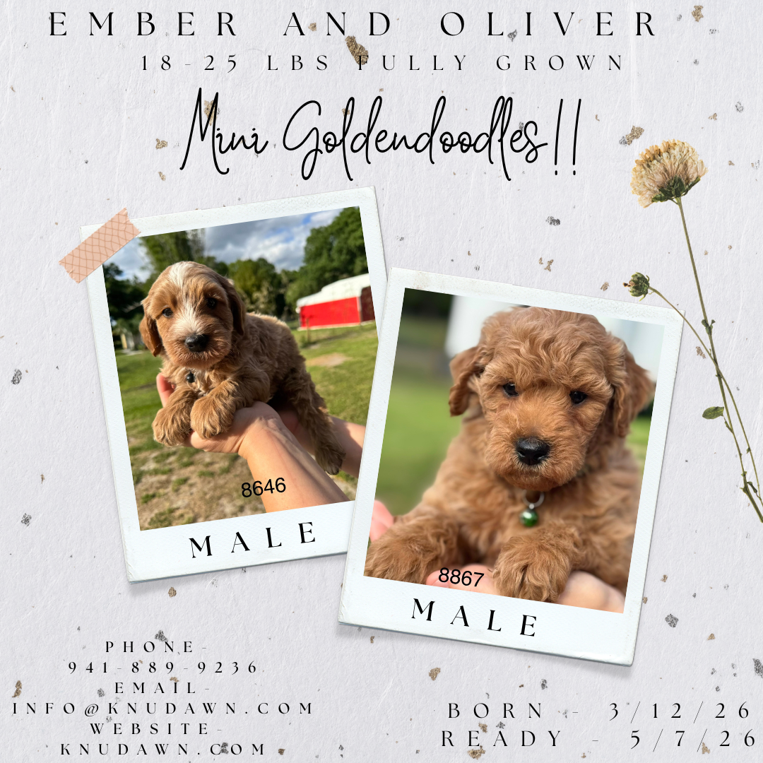 We have 2 Mini Goldendoodle males available. These boys are beautiful and have big personalities!